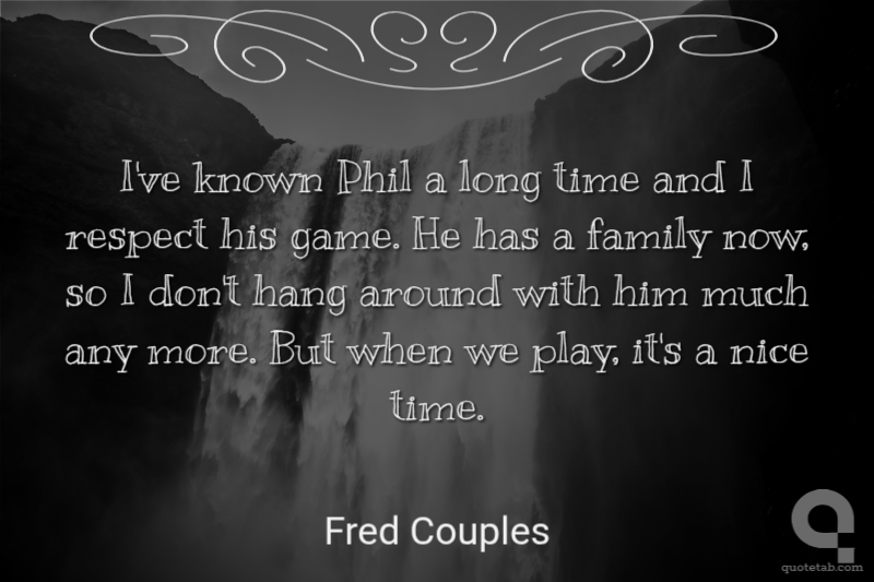 I've known Phil a long time and I respect his game. He has a family now, so I don't hang around with him much any more. But when we play, it's a nice time.