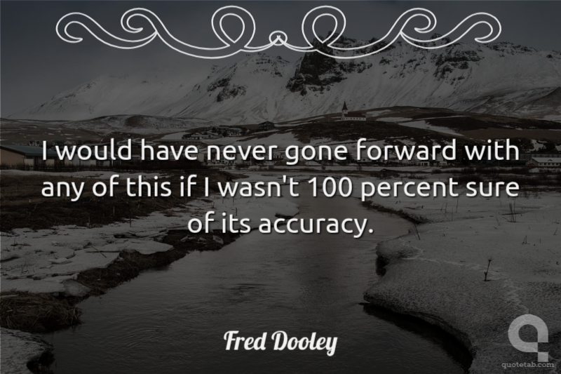 I would have never gone forward with any of this if I wasn't 100 percent sure of its accuracy.