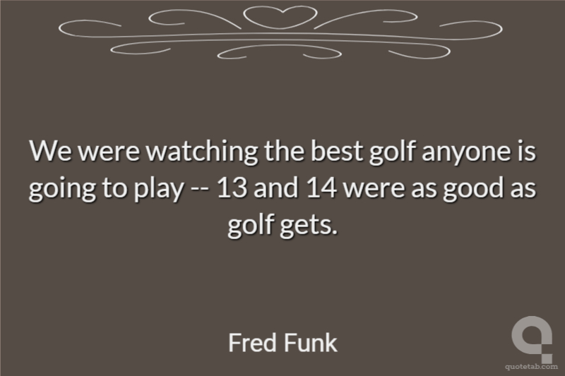 We were watching the best golf anyone is going to play -- 13 and 14 were as good as golf gets.