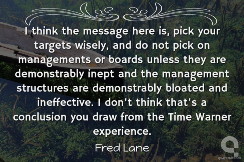 I think the message here is, pick your targets wisely, and do not pick on managements or boards unless they are demonstrably inept and the management structures are demonstrably bloated and ineffective. I don't think that's a conclusion you draw from the Time Warner experience.