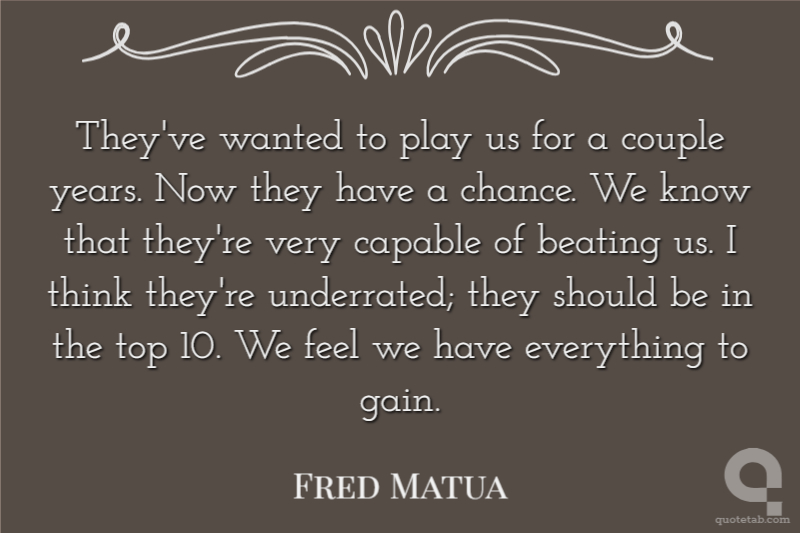 They've wanted to play us for a couple years. Now they have a chance. We know that they're very capable of beating us. I think they're underrated; they should be in the top 10. We feel we have everything to gain.