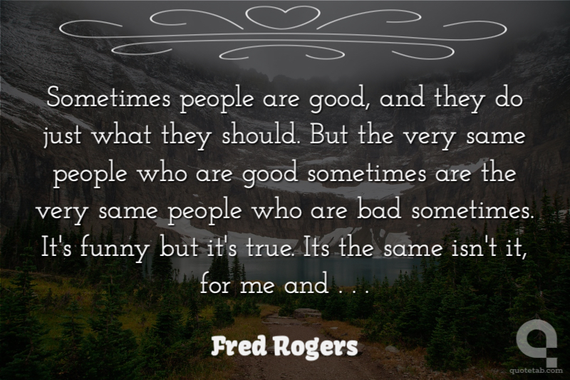 Sometimes people are good, and they do just what they should. But the very same people who are good sometimes are the very same people who are bad sometimes. It's funny but it's true. Its the same isn't it, for me and . . .