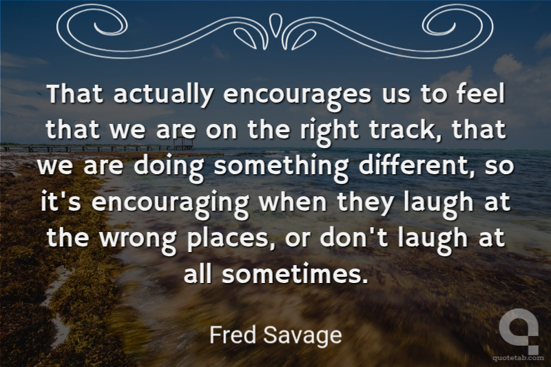 That actually encourages us to feel that we are on the right track, that we are doing something different, so it's encouraging when they laugh at the wrong places, or don't laugh at all sometimes.