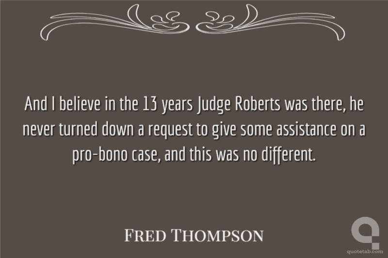 And I believe in the 13 years Judge Roberts was there, he never turned down a request to give some assistance on a pro-bono case, and this was no different.
