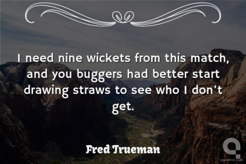 I need nine wickets from this match, and you buggers had better start drawing straws to see who I don't get.