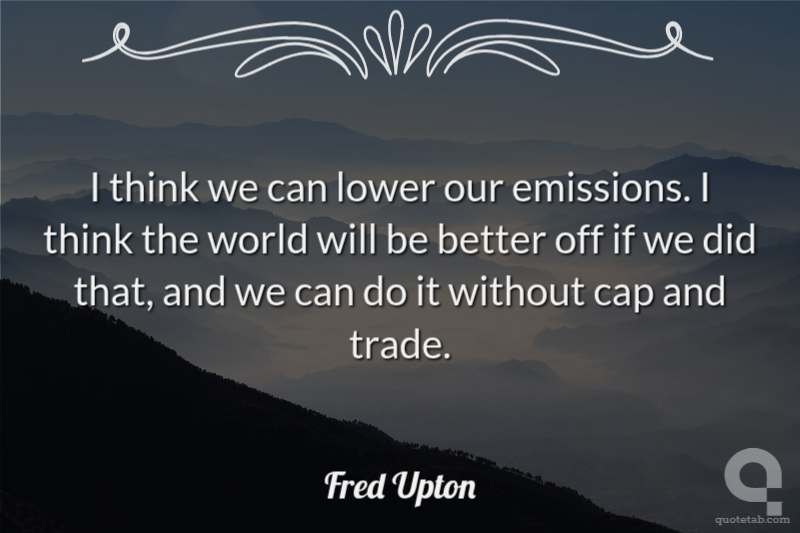 I think we can lower our emissions. I think the world will be better off if we did that, and we can do it without cap and trade.
