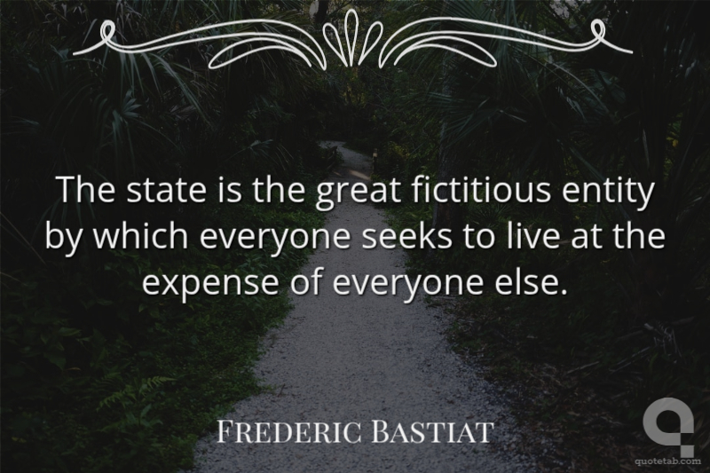 The state is the great fictitious entity by which everyone seeks to live at the expense of everyone else.