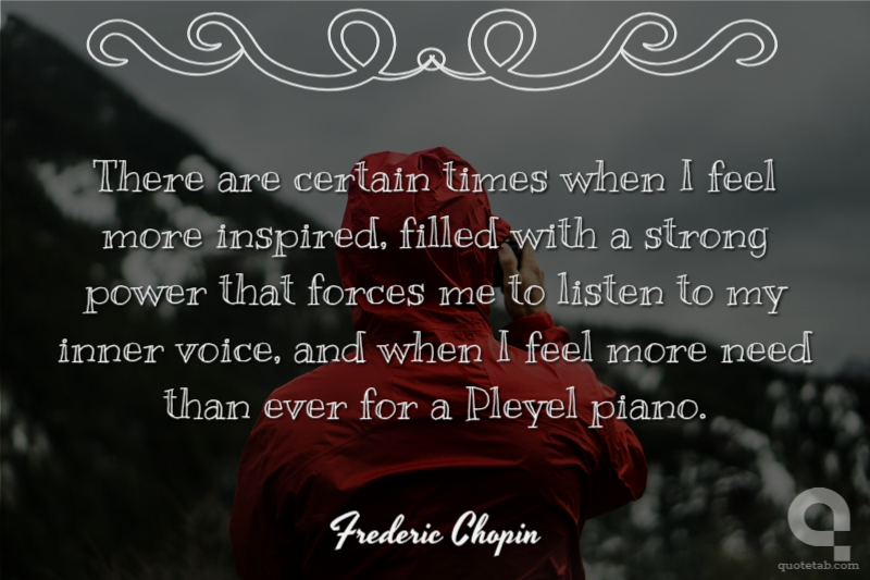 Liszt commenting on the music of Frédéric Chopin: He confided . . . those inexpressible sorrows to which the pious give vent in their communication with their Maker. What they never say except upon their knees, he said in his palpitating compositions.