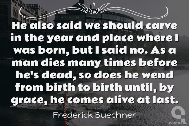 He also said we should carve in the year and place where I was born, but I said no. As a man dies many times before he's dead, so does he wend from birth to birth until, by grace, he comes alive at last.