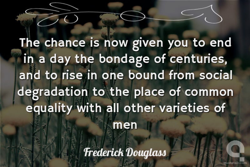 The chance is now given you to end in a day the bondage of centuries, and to rise in one bound from social degradation to the place of common equality with all other varieties of men