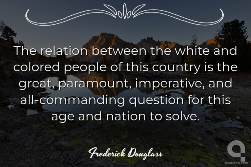 The relation between the white and colored people of this country is the great, paramount, imperative, and all-commanding question for this age and nation to solve.