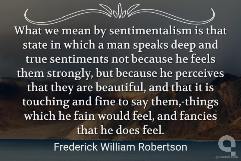 What we mean by sentimentalism is that state in which a man speaks deep and true sentiments not because he feels them strongly, but because he perceives that they are beautiful, and that it is touching and fine to say them,-things which he fain would feel, and fancies that he does feel.