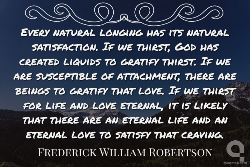 Every natural longing has its natural satisfaction. If we thirst, God has created liquids to gratify thirst. If we are susceptible of attachment, there are beings to gratify that love. If we thirst for life and love eternal, it is likely that there are an eternal life and an eternal love to satisfy that craving.