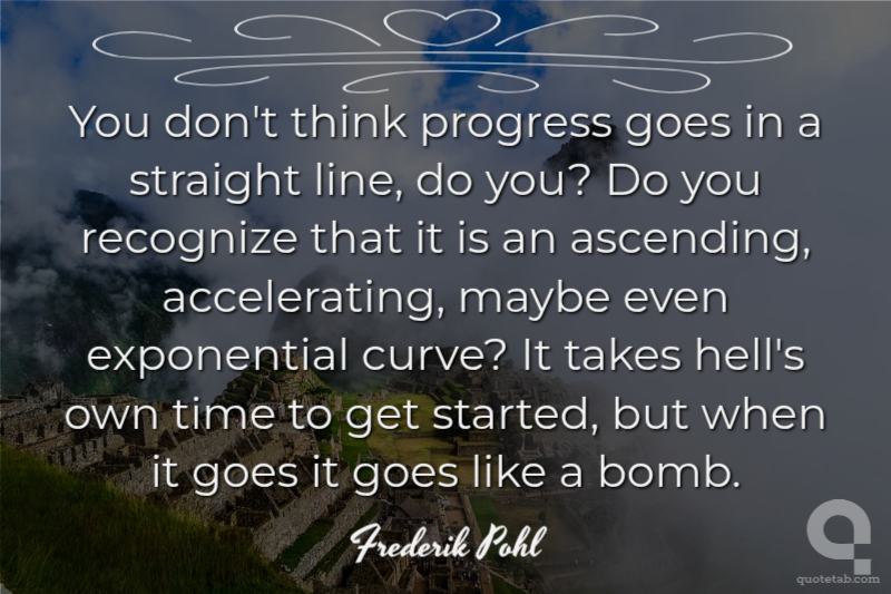 You don't think progress goes in a straight line, do you? Do you recognize that it is an ascending, accelerating, maybe even exponential curve? It takes hell's own time to get started, but when it goes it goes like a bomb.