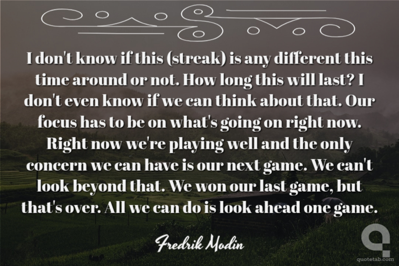 I don't know if this (streak) is any different this time around or not. How long this will last? I don't even know if we can think about that. Our focus has to be on what's going on right now. Right now we're playing well and the only concern we can have is our next game. We can't look beyond that. We won our last game, but that's over. All we can do is look ahead one game.