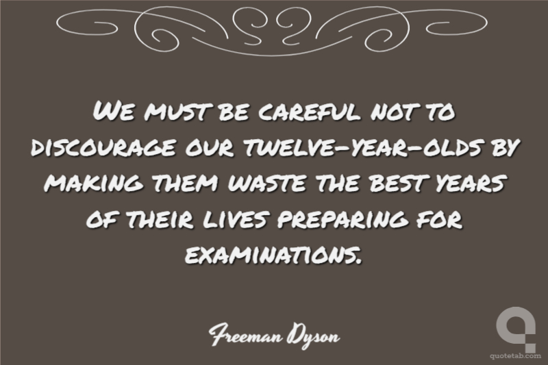 We must be careful not to discourage our twelve-year-olds by making them waste the best years of their lives preparing for examinations.