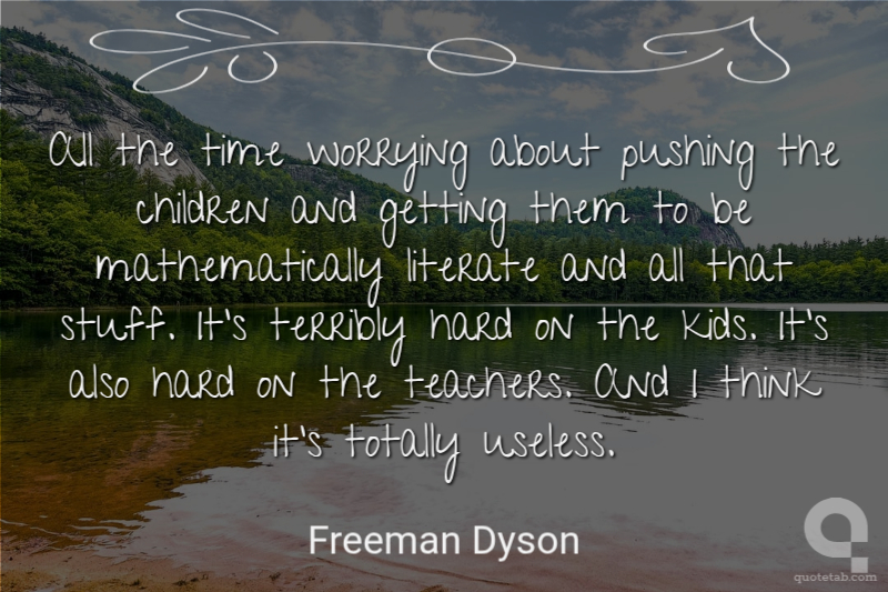 All the time worrying about pushing the children and getting them to be mathematically literate and all that stuff. It's terribly hard on the kids. It's also hard on the teachers. And I think it's totally useless.