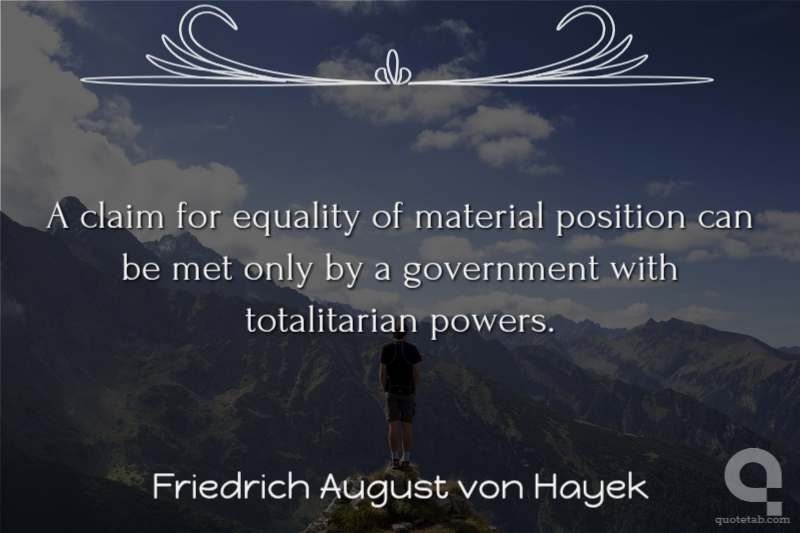 A claim for equality of material position can be met only by a government with totalitarian powers.