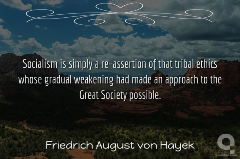 Socialism is simply a re-assertion of that tribal ethics whose gradual weakening had made an approach to the Great Society possible.