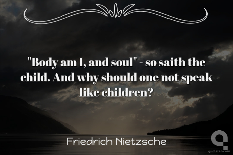 "Body am I, and soul" - so saith the child. And why should one not speak like children?