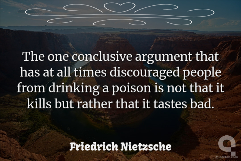 The one conclusive argument that has at all times discouraged people from drinking a poison is not that it kills but rather that it tastes bad.