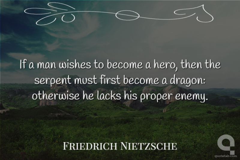 If a man wishes to become a hero, then the serpent must first become a dragon: otherwise he lacks his proper enemy.
