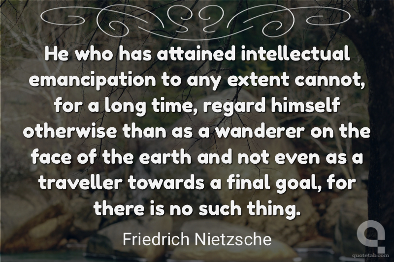 He who has attained intellectual emancipation to any extent cannot, for a long time, regard himself otherwise than as a wanderer on the face of the earth and not even as a traveller towards a final goal, for there is no such thing.