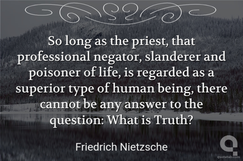 So long as the priest, that professional negator, slanderer and poisoner of life, is regarded as a superior type of human being, there cannot be any answer to the question: What is Truth?