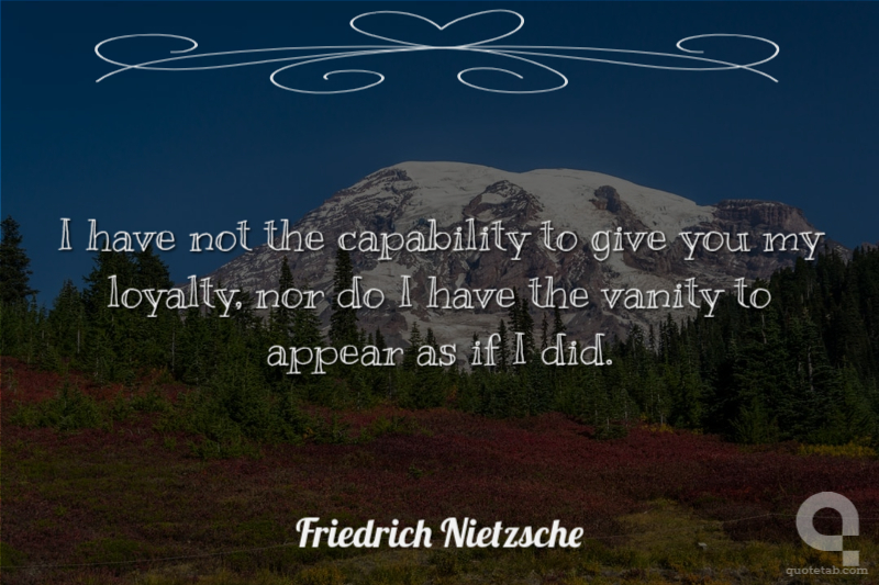 I have not the capability to give you my loyalty, nor do I have the vanity to appear as if I did.