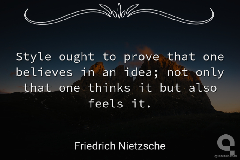 Style ought to prove that one believes in an idea; not only that one thinks it but also feels it.