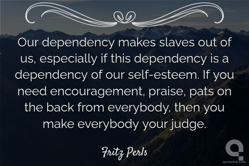 Our dependency makes slaves out of us, especially if this dependency is a dependency of our self-esteem. If you need encouragement, praise, pats on the back from everybody, then you make everybody your judge.