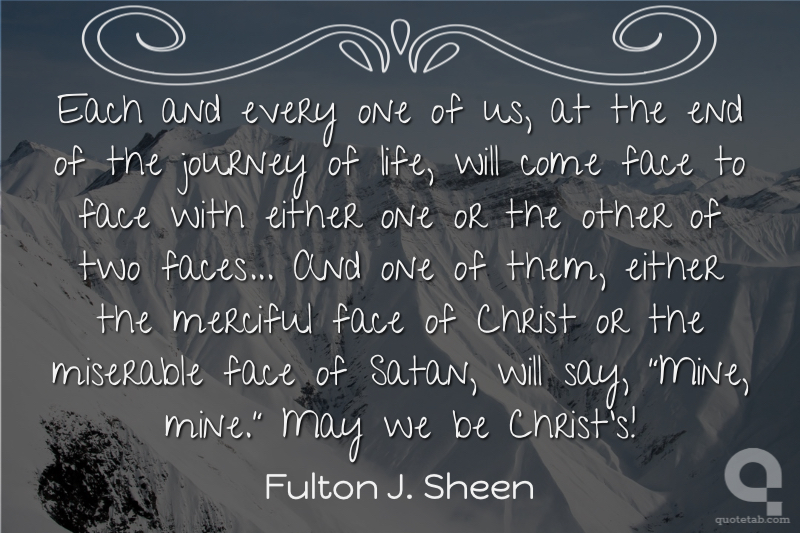 Each and every one of us, at the end of the journey of life, will come face to face with either one or the other of two faces... And one of them, either the merciful face of Christ or the miserable face of Satan, will say, "Mine, mine." May we be Christ's!