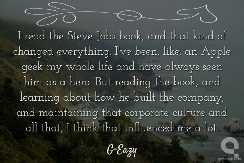 I read the Steve Jobs book, and that kind of changed everything. I've been, like, an Apple geek my whole life and have always seen him as a hero. But reading the book, and learning about how he built the company, and maintaining that corporate culture and all that, I think that influenced me a lot.