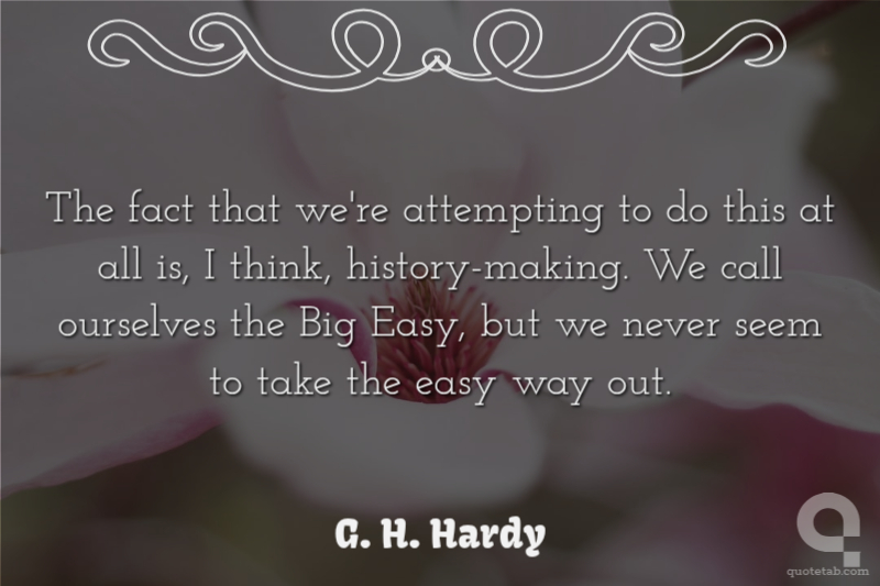 The fact that we're attempting to do this at all is, I think, history-making. We call ourselves the Big Easy, but we never seem to take the easy way out.