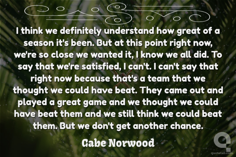 I think we definitely understand how great of a season it's been. But at this point right now, we're so close we wanted it, I know we all did. To say that we're satisfied, I can't. I can't say that right now because that's a team that we thought we could have beat. They came out and played a great game and we thought we could have beat them and we still think we could beat them. But we don't get another chance.