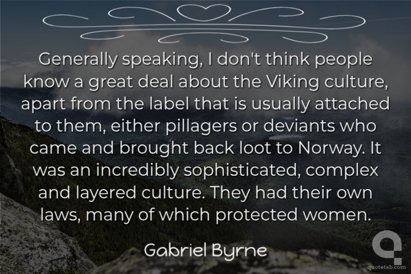 Generally speaking, I don't think people know a great deal about the Viking culture, apart from the label that is usually attached to them, either pillagers or deviants who came and brought back loot to Norway. It was an incredibly sophisticated, complex and layered culture. They had their own laws, many of which protected women.