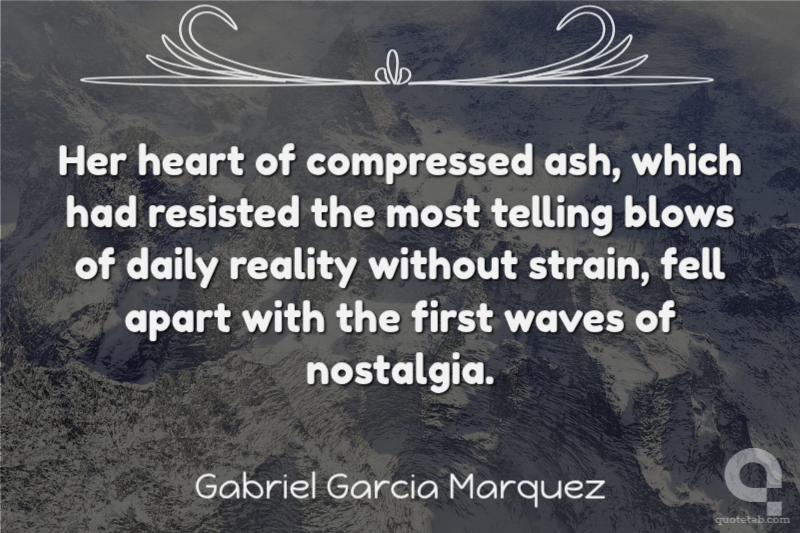 Her heart of compressed ash, which had resisted the most telling blows of daily reality without strain, fell apart with the first waves of nostalgia.