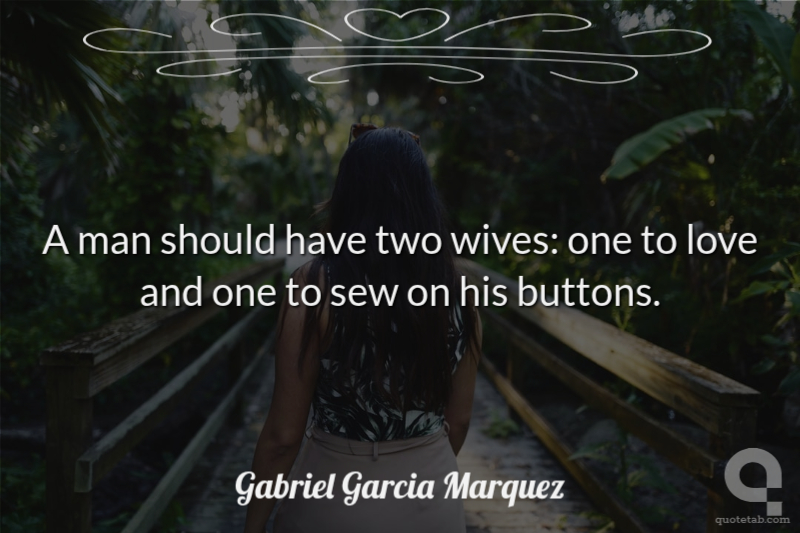 ...they enjoyed the miracle of loving each other as much at the table as in bed, and they grew to be so happy that even when they were two worn-out old people they kept on blooming like children and playing together like dogs.