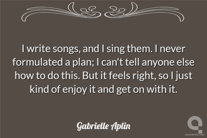 I write songs, and I sing them. I never formulated a plan; I can't tell anyone else how to do this. But it feels right, so I just kind of enjoy it and get on with it.