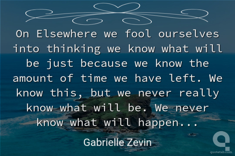 On Elsewhere we fool ourselves into thinking we know what will be just because we know the amount of time we have left. We know this, but we never really know what will be. We never know what will happen...