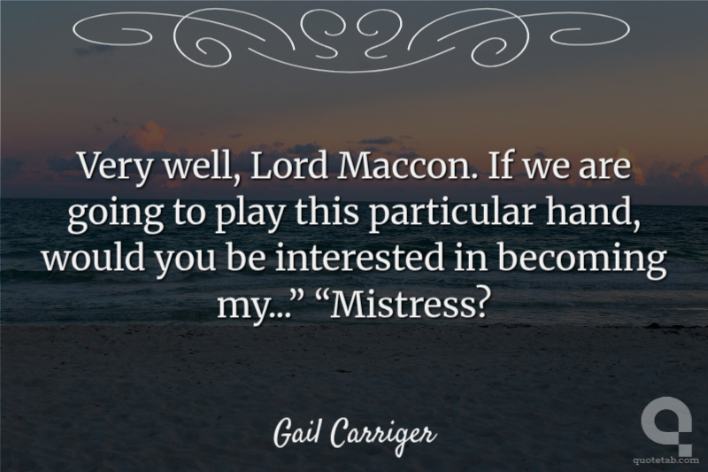 Very well, Lord Maccon. If we are going to play this particular hand, would you be interested in becoming my...” “Mistress?