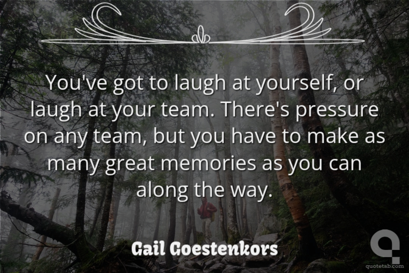 You've got to laugh at yourself, or laugh at your team. There's pressure on any team, but you have to make as many great memories as you can along the way.