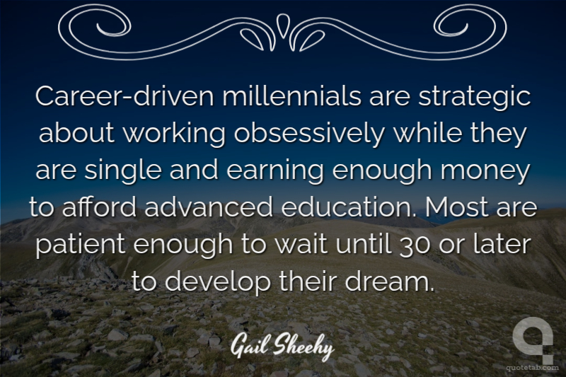 Career-driven millennials are strategic about working obsessively while they are single and earning enough money to afford advanced education. Most are patient enough to wait until 30 or later to develop their dream.