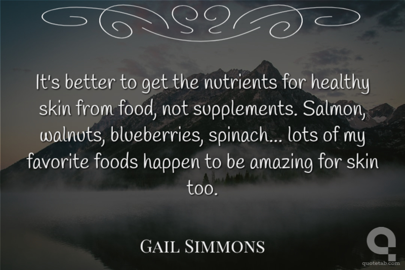 It's better to get the nutrients for healthy skin from food, not supplements. Salmon, walnuts, blueberries, spinach... lots of my favorite foods happen to be amazing for skin too.