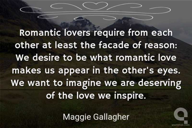 Romantic lovers require from each other at least the facade of reason: We desire to be what romantic love makes us appear in the other's eyes. We want to imagine we are deserving of the love we inspire.