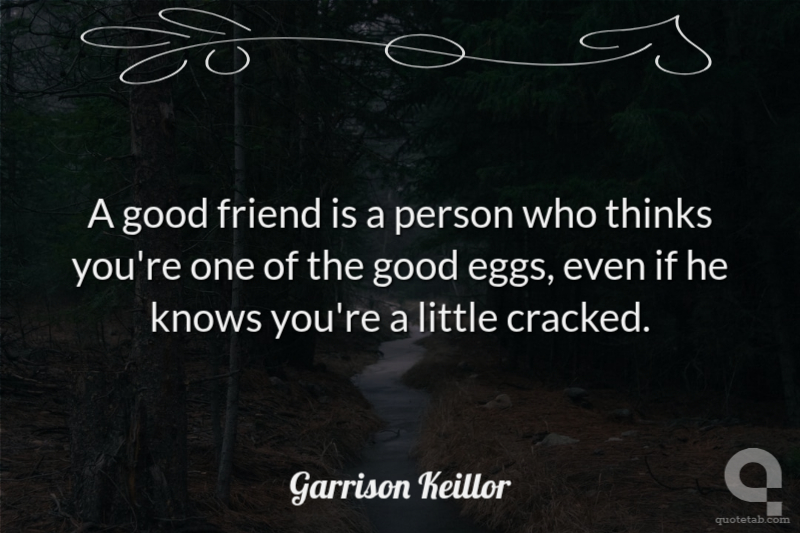 A good friend is a person who thinks you're one of the good eggs, even if he knows you're a little cracked.