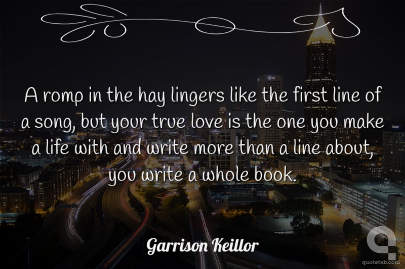 A romp in the hay lingers like the first line of a song, but your true love is the one you make a life with and write more than a line about, you write a whole book.