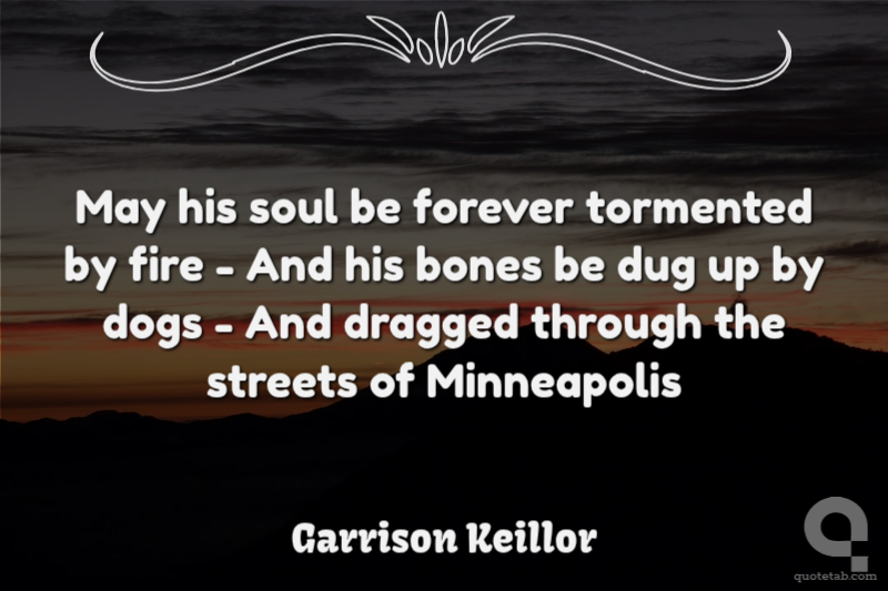 May his soul be forever tormented by fire - And his bones be dug up by dogs - And dragged through the streets of Minneapolis