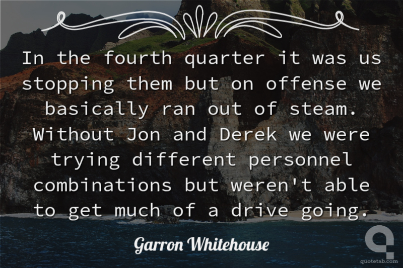 In the fourth quarter it was us stopping them but on offense we basically ran out of steam. Without Jon and Derek we were trying different personnel combinations but weren't able to get much of a drive going.