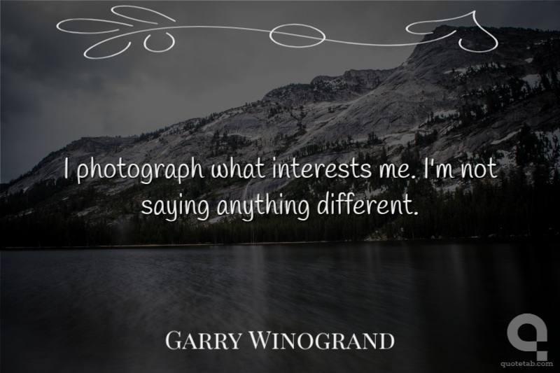 My intention is to make interesting photographs. That's it, in the end. I don't make it up. Let's say it's a world I never made. That's what was there to deal with.